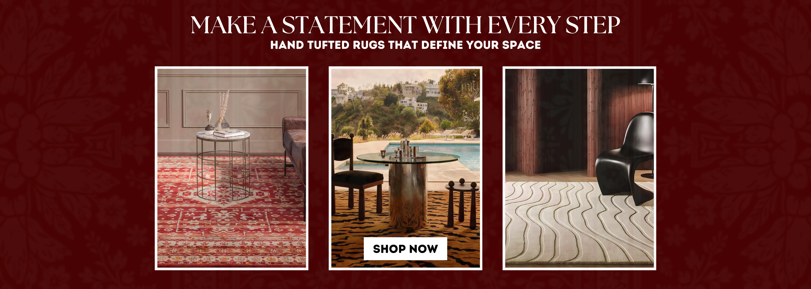 Our hand-tufted rugs are crafted with precision and care, offering a blend of traditional artistry and modern design. Each rug is made with high-quality materials to add elegance and comfort to any space.
