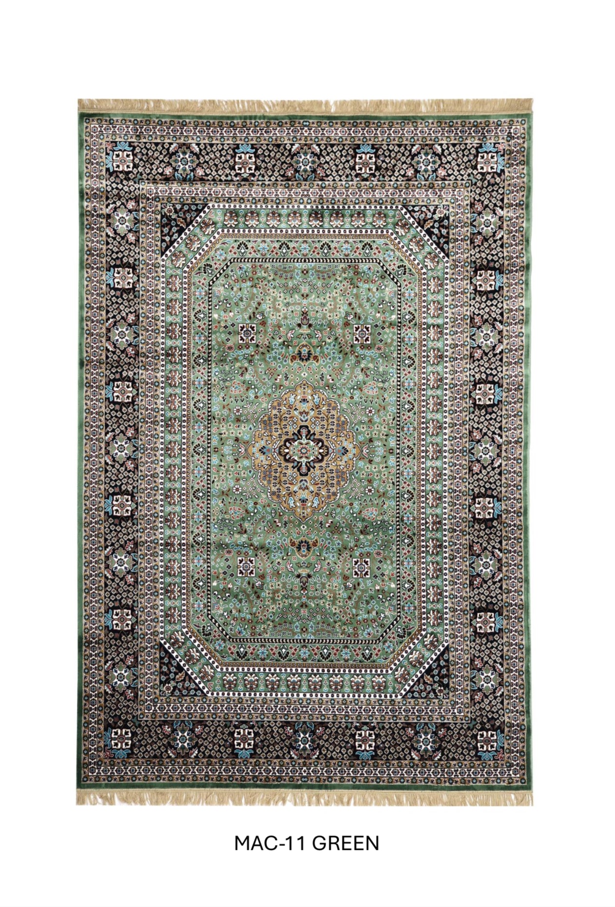 Groen Persiese Sy-tapyt vir woonkamer en slaapkamer, swaar, antislip mat.