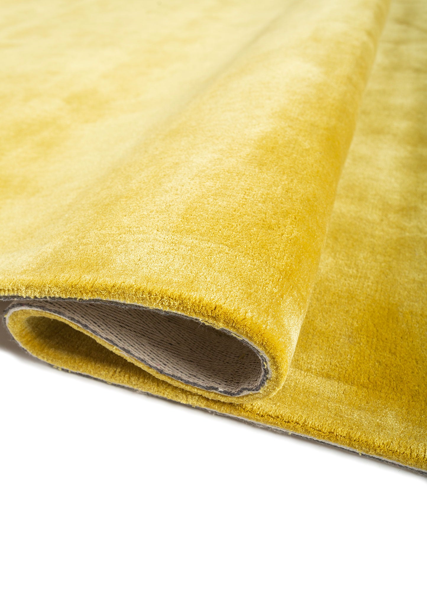 Dark Amber Gold Viscose Silk Hand Tufted Rug For Living Room & Bed Room