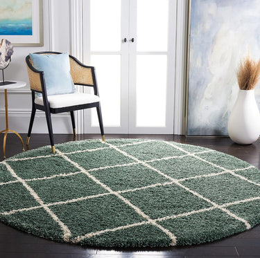Green Round Trellis Microfiber Super Soft Anti Skid Shaggy Rug