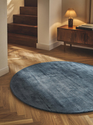 Round Navy Blue Viscose Silk Hand Tufted Rug