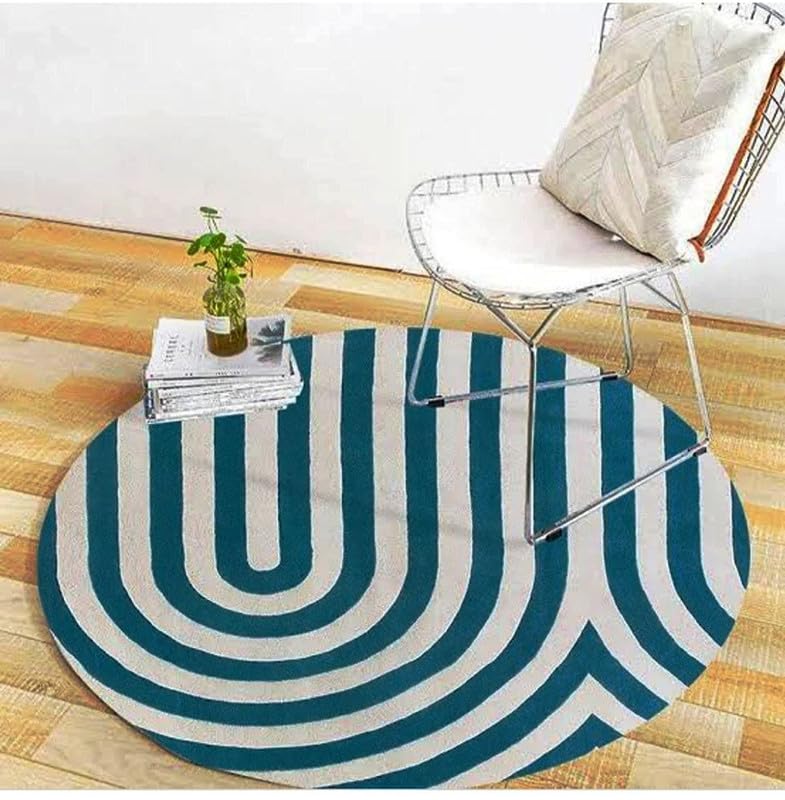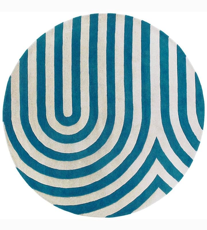 Round Blue & White Super Soft New Zealand Rug