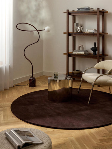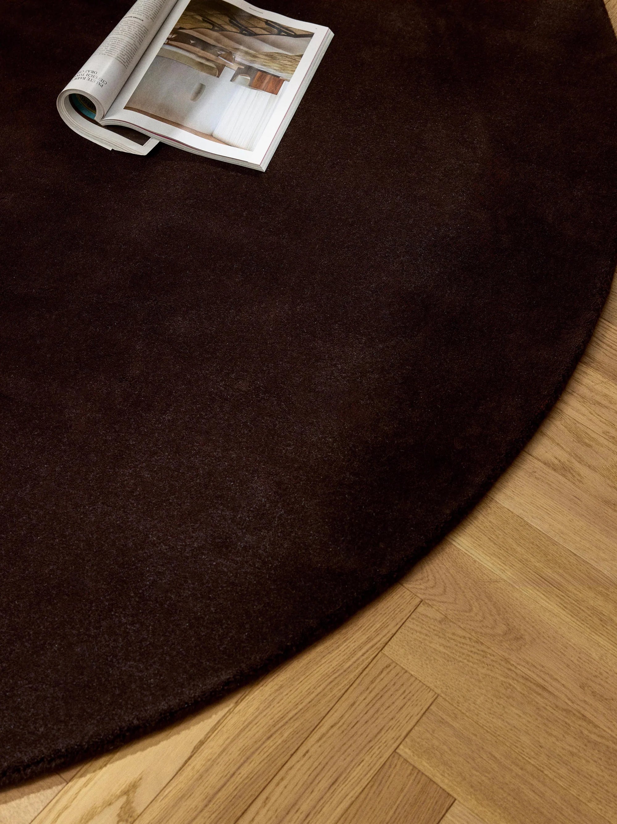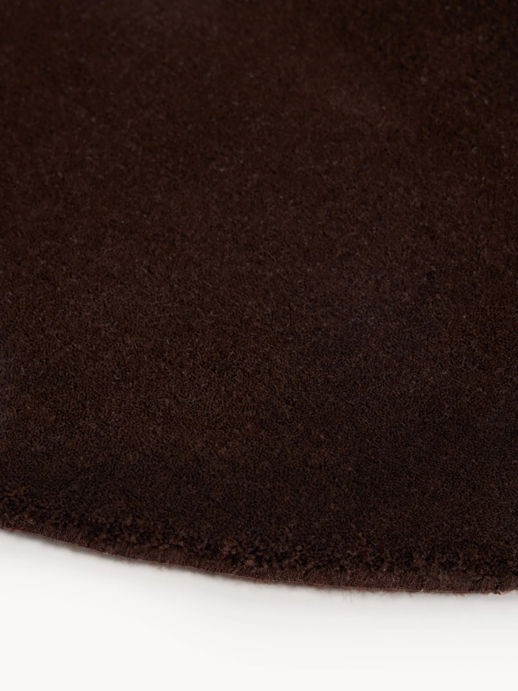 Round Hand Tufted Dark Brown New Zealand Wool Rug