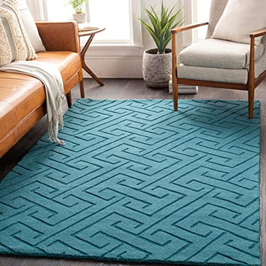 Hand Tufted Sky Blue High Low Pile Wool Carpet