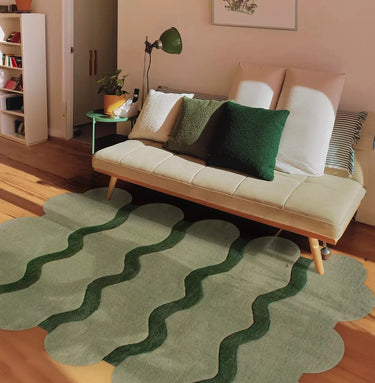 Handmade Modern Scallop Rug Bohemian Green Tufted Rug 100% Wool Carpet