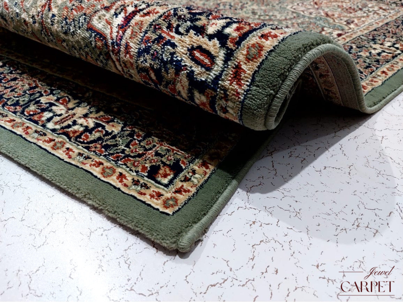 Green Persian Wool Traditional Heavy Anti Skid Carpet