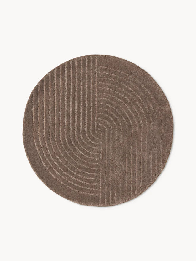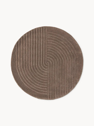 Round Hand Tufted Brown New Zealand Wool Rug