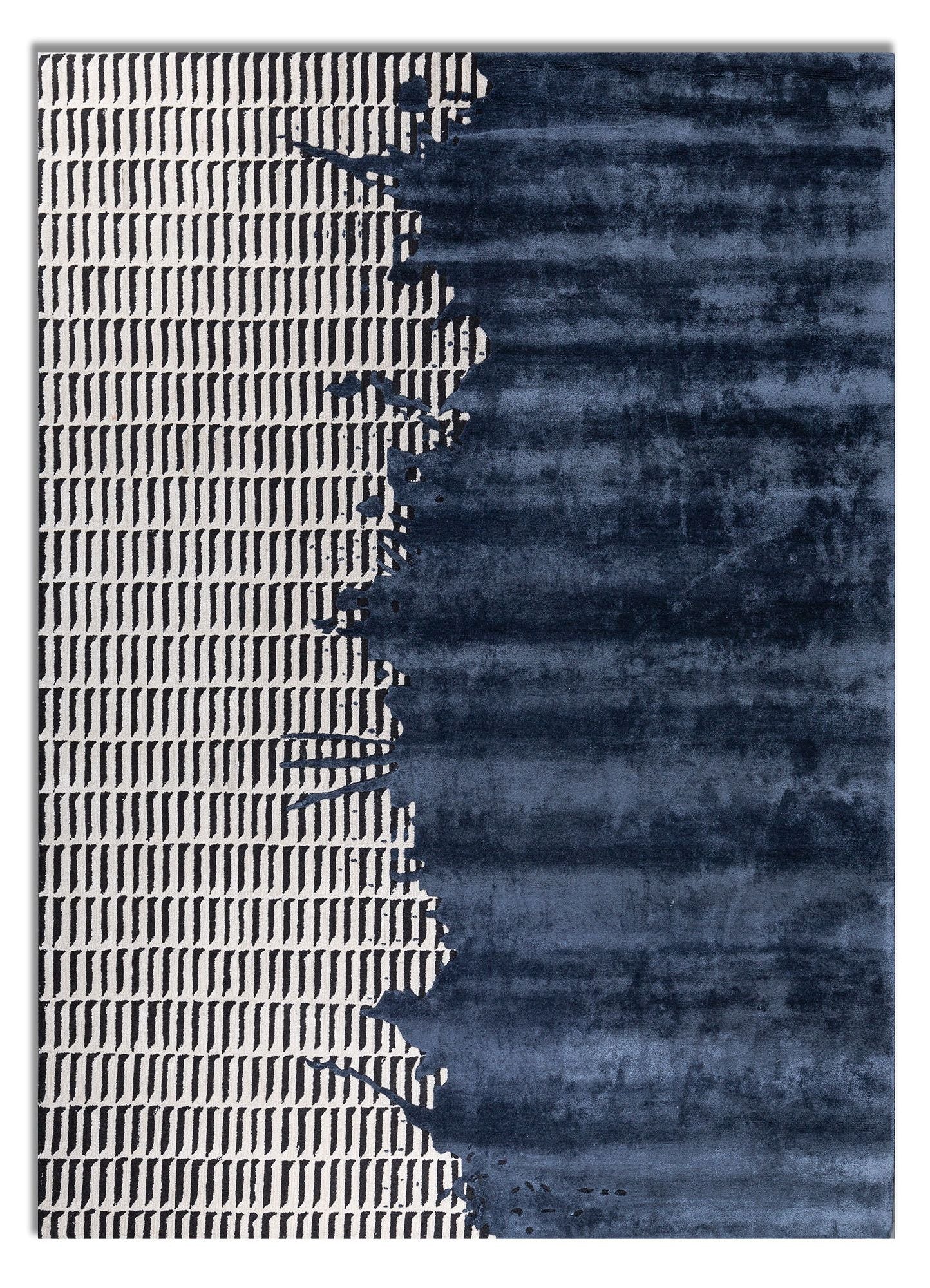 Indigo Blue & White Hand Tufted New Zealand Wool & Viscose Rug