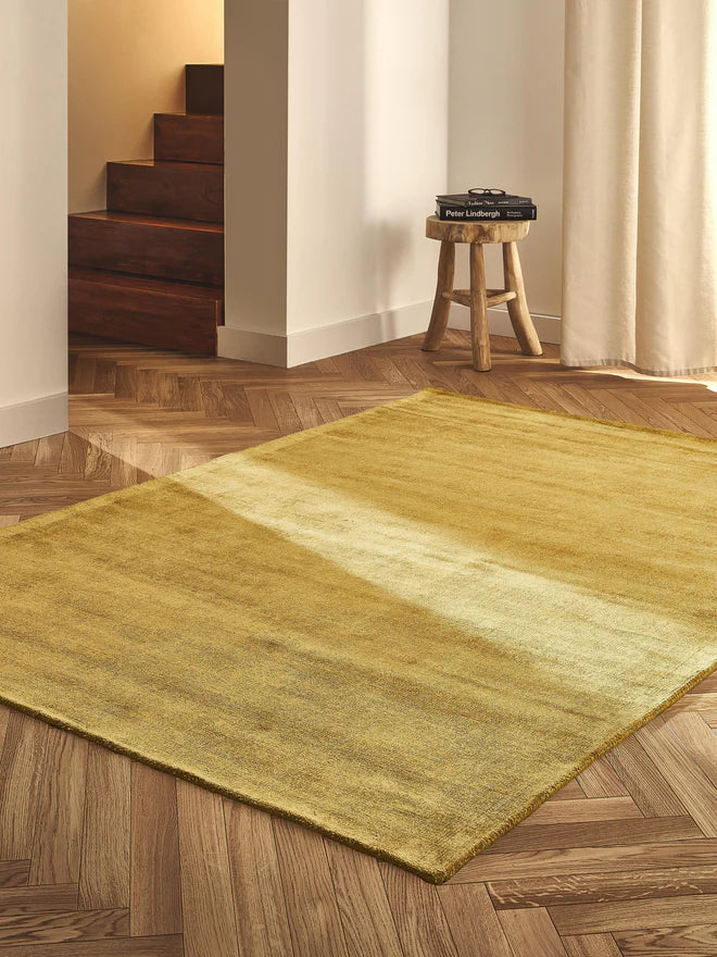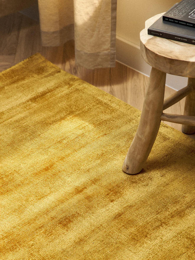 Sunny Yellow Luxury Viscose Silk Hand Tufted Rug