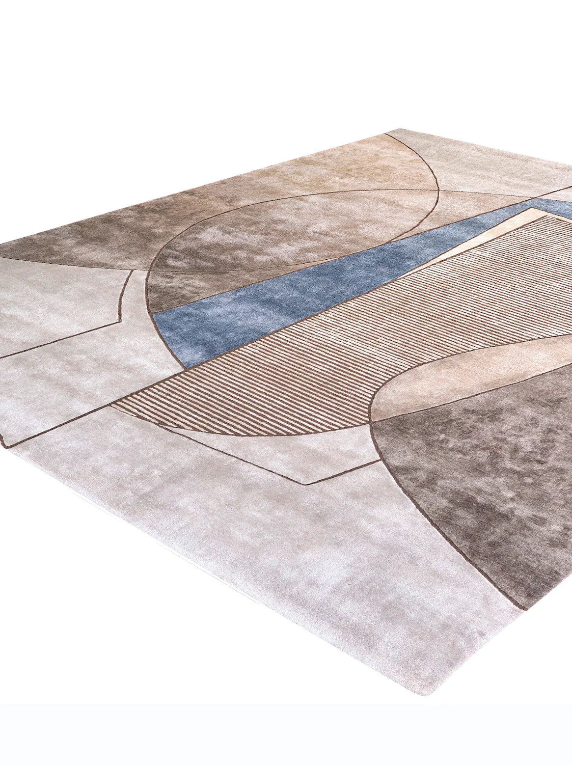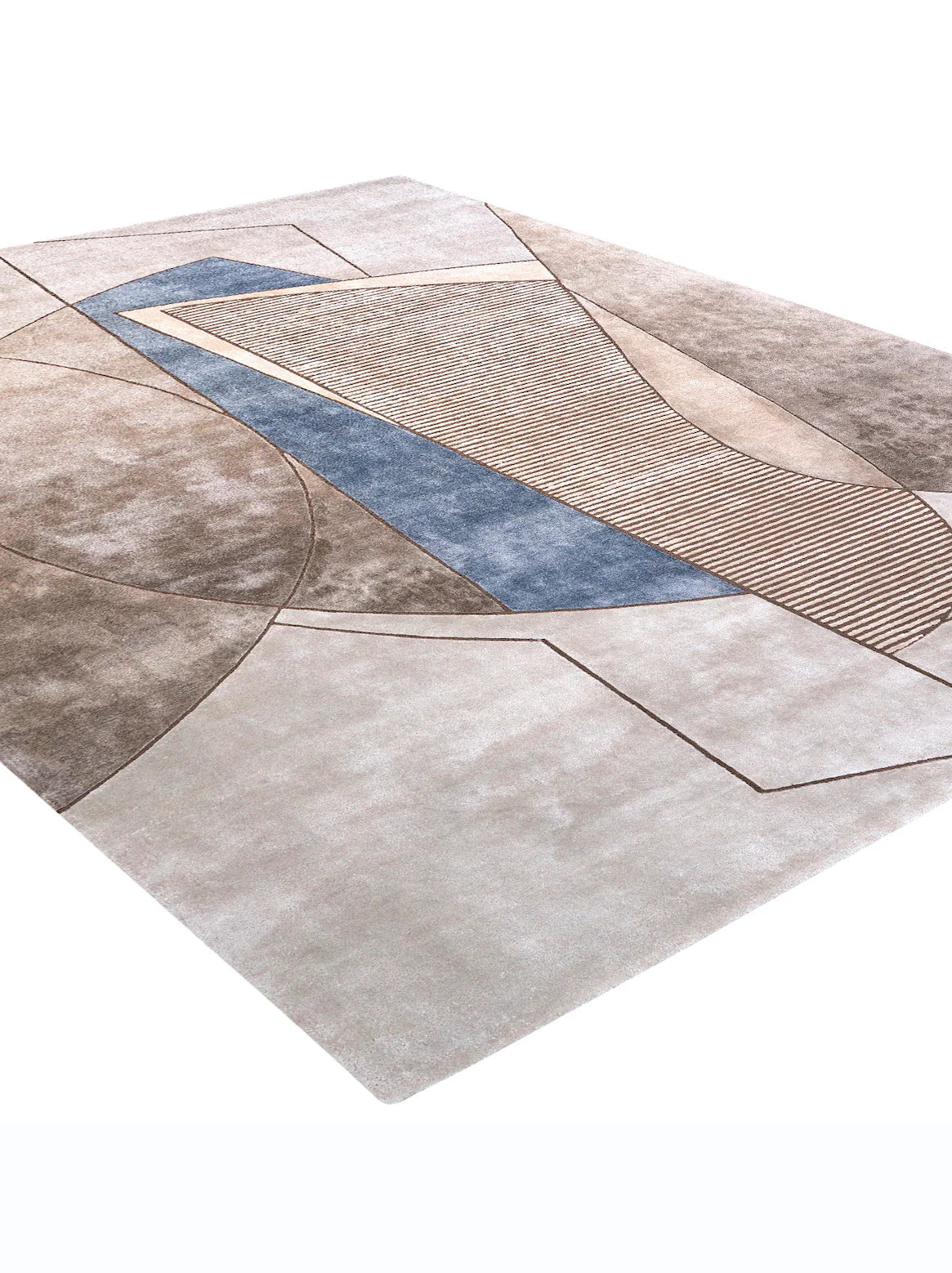 COLURE Grey Blue Hand Tufted New Zealand Wool & Viscose Rug