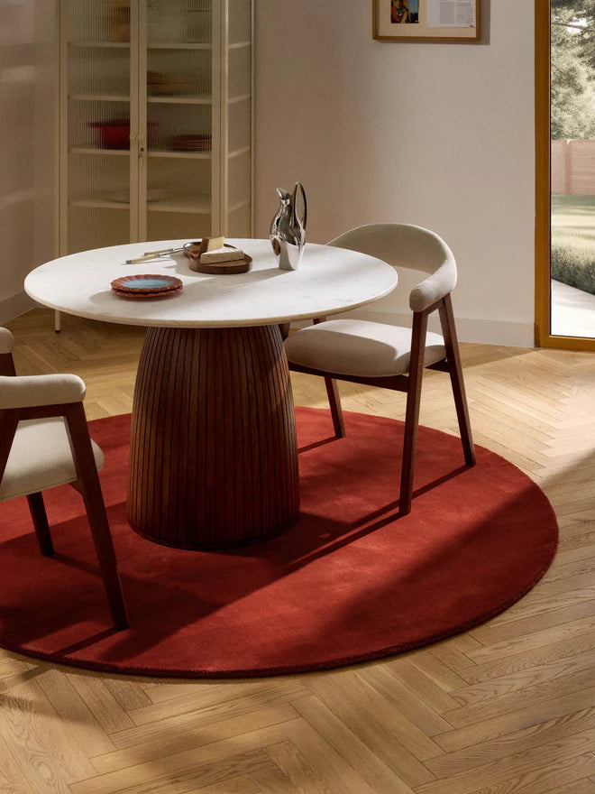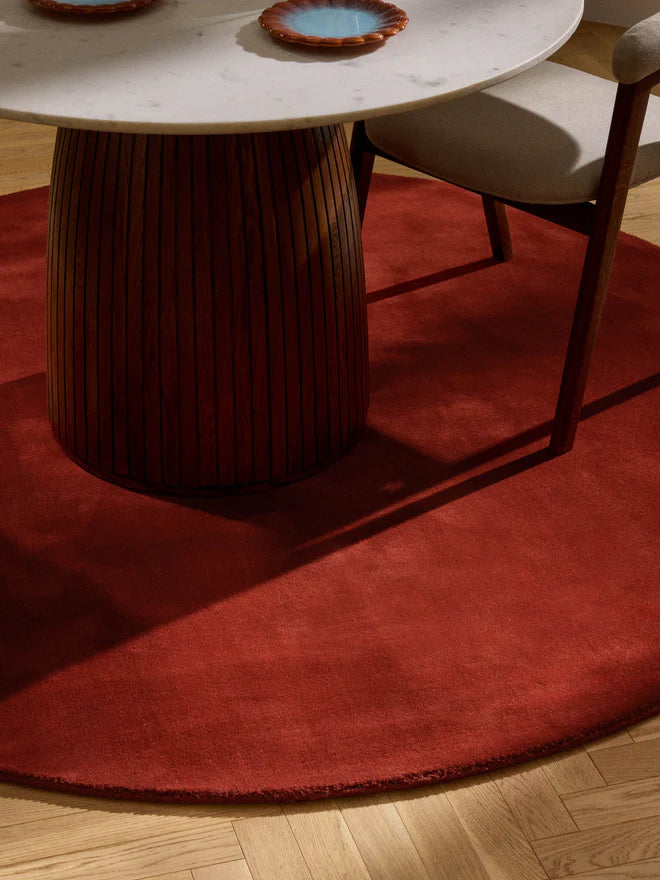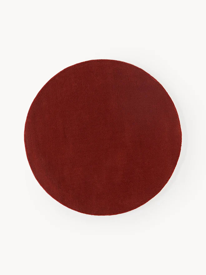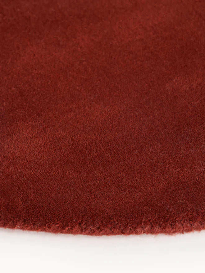 Round Hand Tufted Burgundy New Zealand Wool Rug
