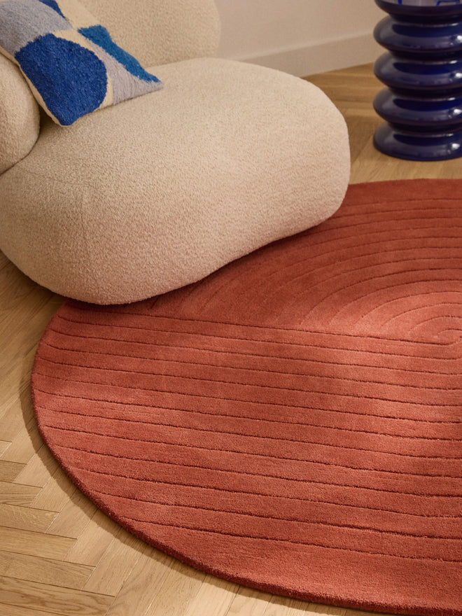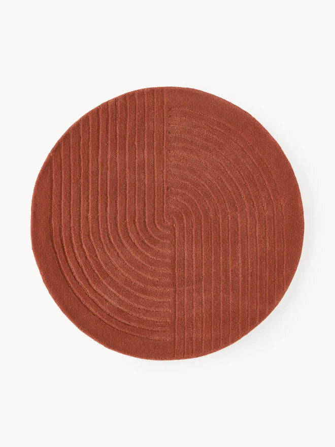 Burnt Orange Round Hand Tufted New Zealand Wool Rug